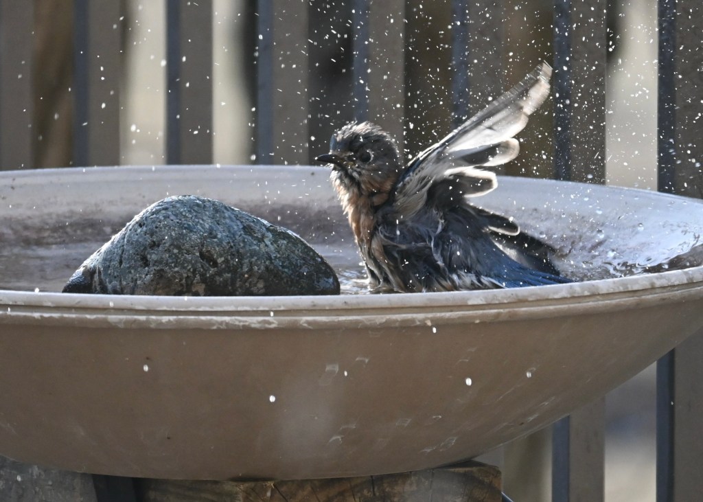 Jane and her shadowJane is still smiling despite all the work!A cardinalBird diversity – chickadee, cardinal , and goldfinchA goldfinch drinks