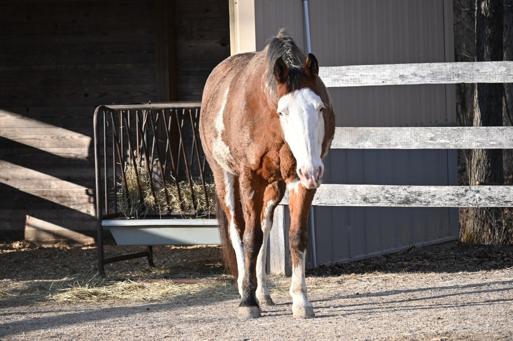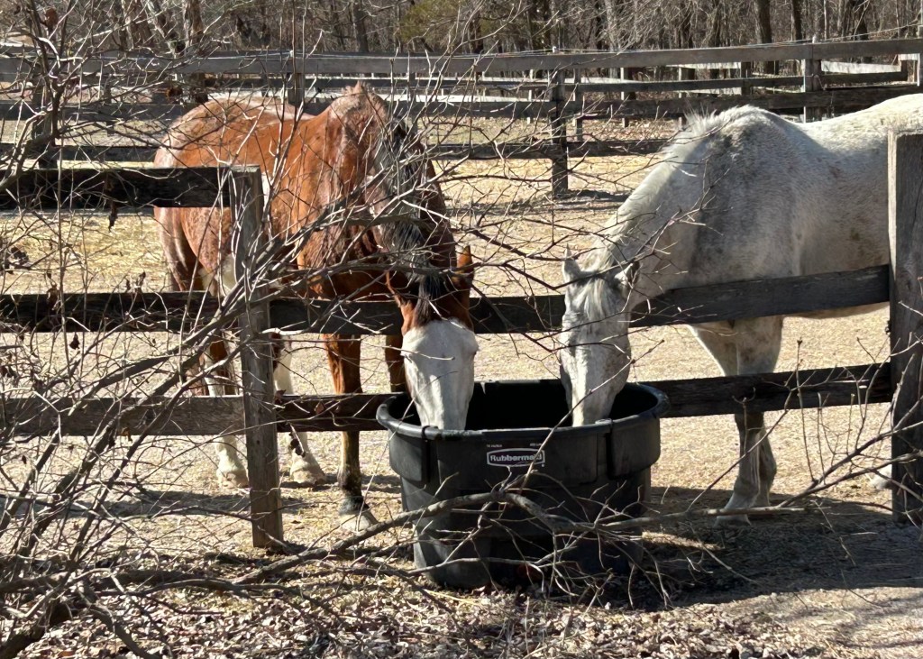 Another busy day today – Devan arrived early with an assistant PT person named Dana, and they put Harry through his paces. It was a hard workout, and he was very groggy from the new medication. Once they departed, we had some calm, and Harry had a little bit of rest. I enjoyed watching the horses in the pasture between chores. During the bitter cold, they stayed by the shed to eat hay, but now they are searching for grass under the snow. Horses are designed to move from place to place eating, so this lifestyle is actually good for them.