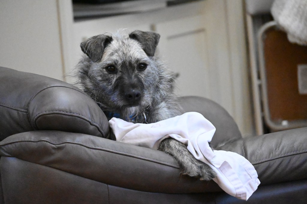 Eddy alerted me very early in the morning to a visitor in the south pasture. I wouldn’t let Eddy out to consort with coyotes, because we had to leave. Once Eddy finds a compelling scent, he will not be lifted! To get back at me later, he stole my napkin off my lap. Naughty, adorable, Eddy!