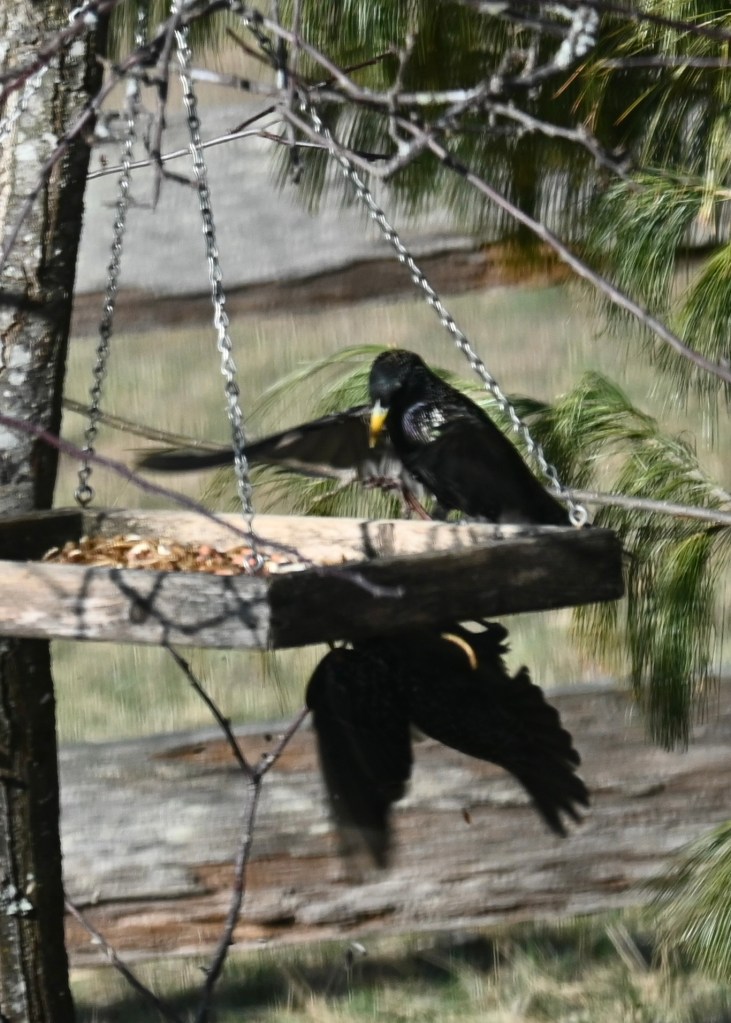 The birds have been hungry as cold returned. And, sadly, the stream developed a problem just before the cold front came in, and we now await expert help. My efforts, with Jane, were unsuccessful, and wasted several hours.