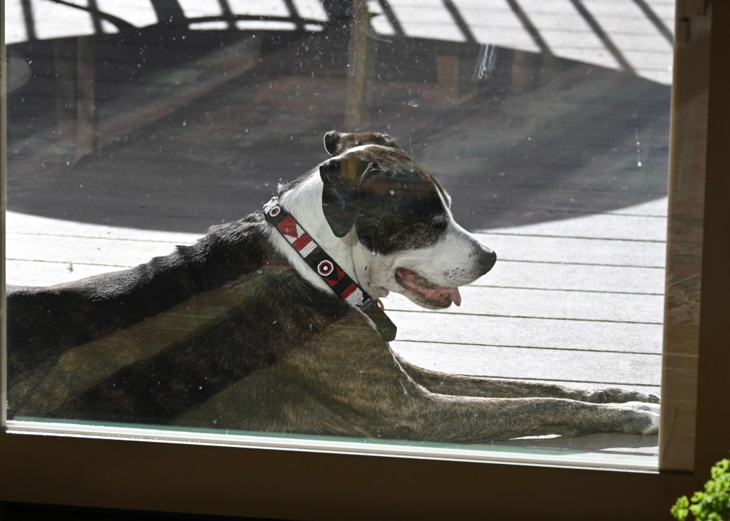 Roscoe went outside for a while, and was quite miffed that it took me so long to notice him at the sliding door!