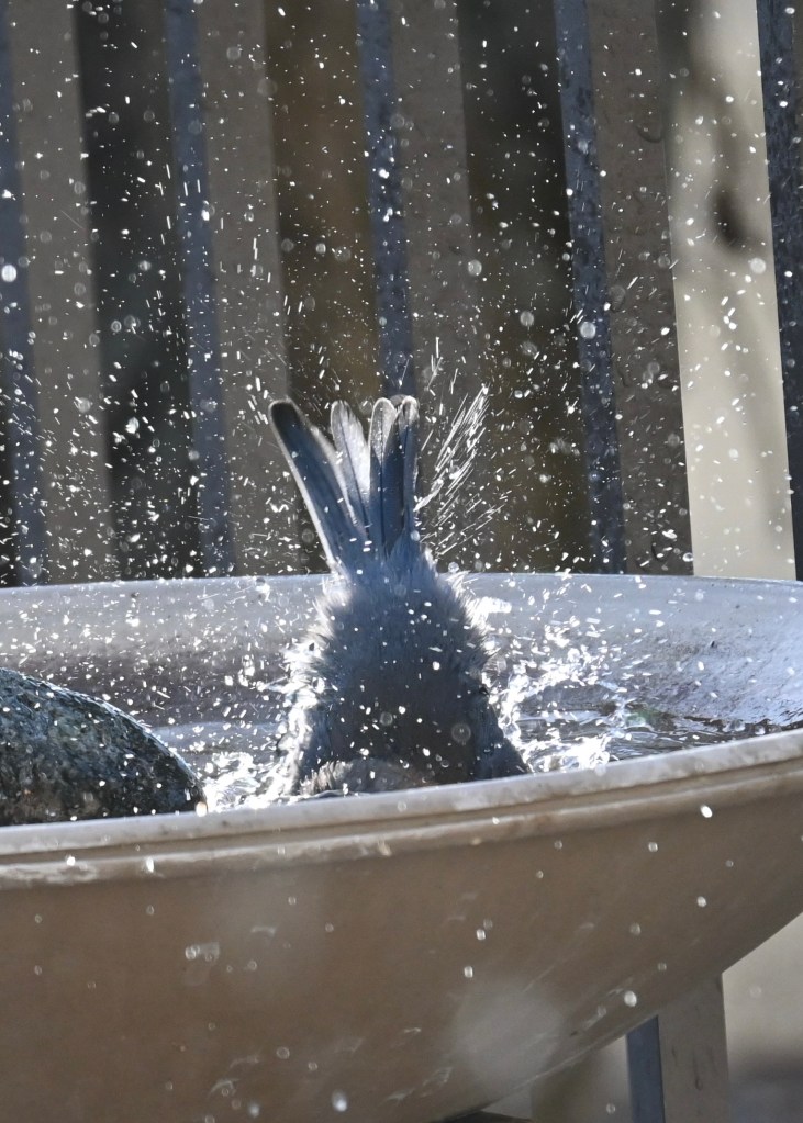 I did try to take some pictures of birds, and of Jane, when she came by with the mail. Not much to report today, though I am exhausted…