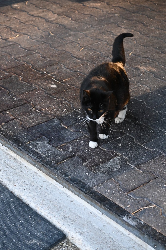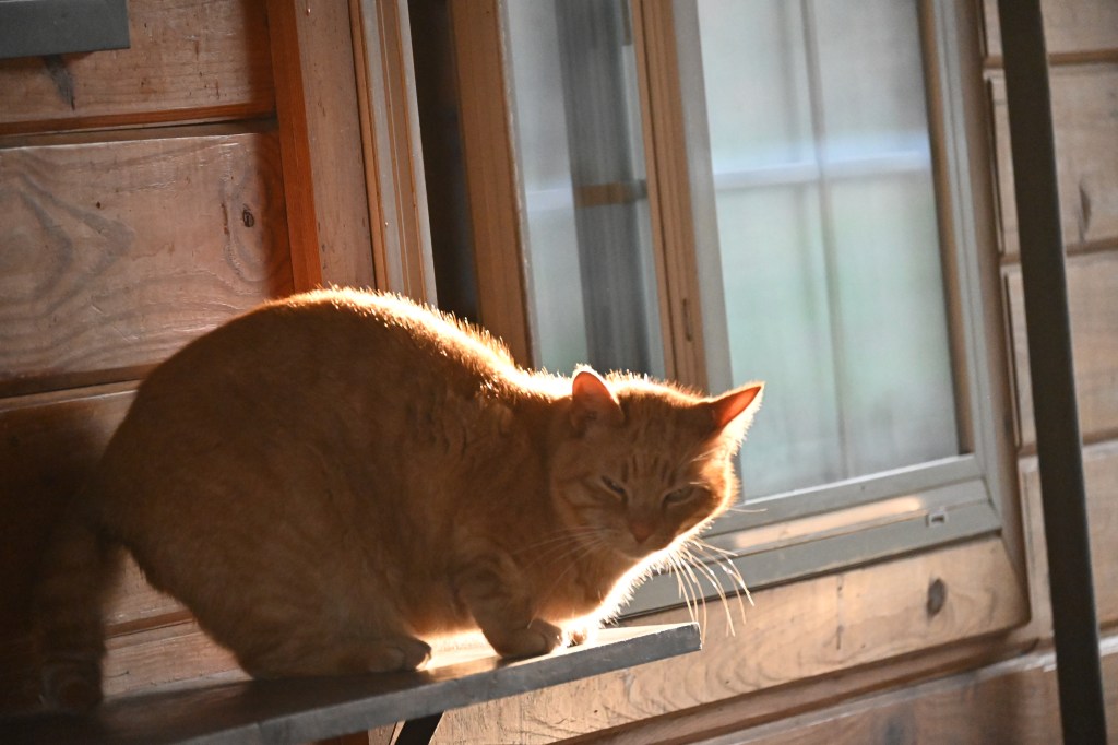 Marmalade came down the ladder to see the horses back in the barn…