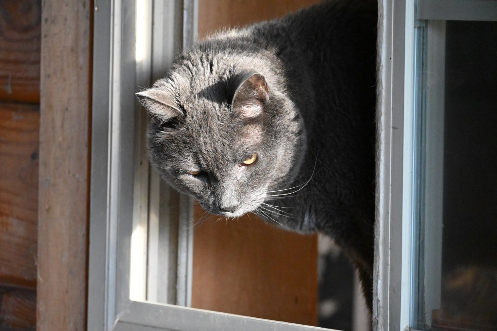 The cats are all well, despite a bitter cold spell that we have just endured. The temperature on Sunday dropped almost 50 degrees, with howling winds and threats of tornadoes. Cats stayed in the warm tack room during two bitter nights. Spring weather returns today.
