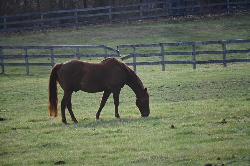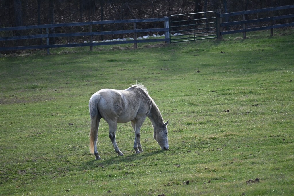 Fantastic weather has followed the miserable deep freeze and snow. There are still remnants of snow in places, but it feels like Spring. Jane had another obligation, so I fed the horses this morning. It was wonderful to be outside on a glorious day, and back to “normal” life. The horses enjoyed the day, too.