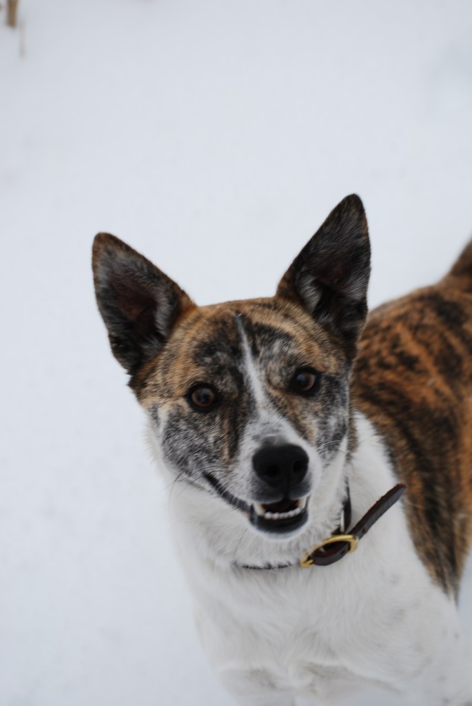 We had a few minutes of snow yesterday morning, falling onto our only car. On Monday, I picked up the white car that had been under repair since December 10, when I wrecked it, and sold it back to the dealer from whence it had come. We only had it for 5 months, and we really only need one car. The white car was almost too nice for our lifestyle, anyway. The dogs agree!