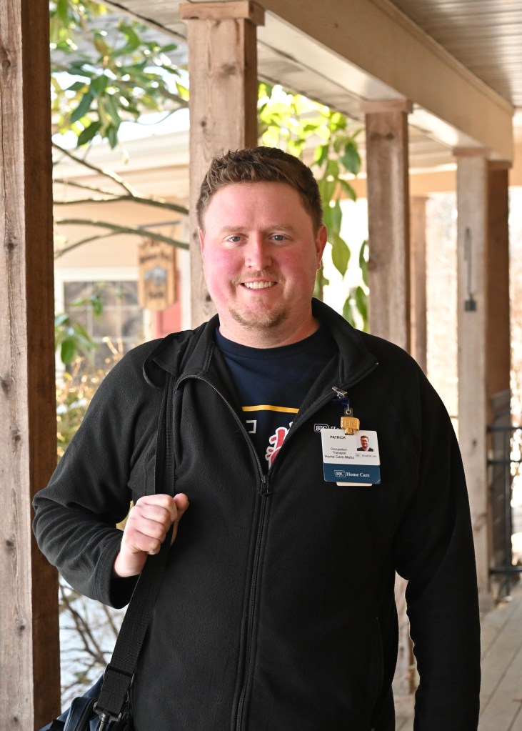 The day began with a visit from Patrick, the “Occupational Therapist”. It’s a funny sounding medical career, but we learned in 2020 how valuable Occupational Therapy is. Another term for it is ergotherapy, from the Greek ergon, which refers to work, and to activity. So, Patrick comes here to help Harry return to his work, ultimately, but also helps him return to normal life around the house. He has excellent ideas for how to accomplish things, and has been a big part of Harry’s remarkable progress.