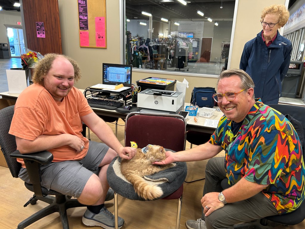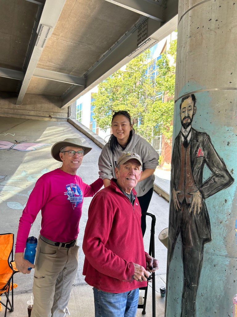 The art show was an insane success (Harry had a short course of prednisone to help him through giving a talk and greeting many, many friends). There were a couple of hundred people – it was chaos, but fun chaos. Harry’s childhood friend, Gay, flew in from San Francisco and surprised him at the gallery, then stayed a couple of nights.
