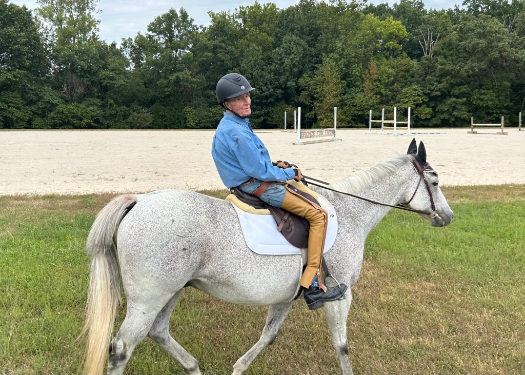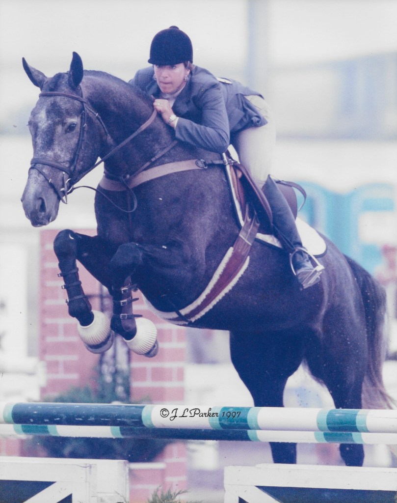 In the mid 90s, Laura was at St. Louis, when the St. Louis National was held at Queeny Park. She was always interested in horses that were for sale, and we brought our young horse, Jesuit (Jesse) over to the show grounds for her to try. She loved him. We were over the moon, and delivered him to Oconomowoc two weeks later. Alas, he failed her vet check, and returned to us. But that is part of yet another story…