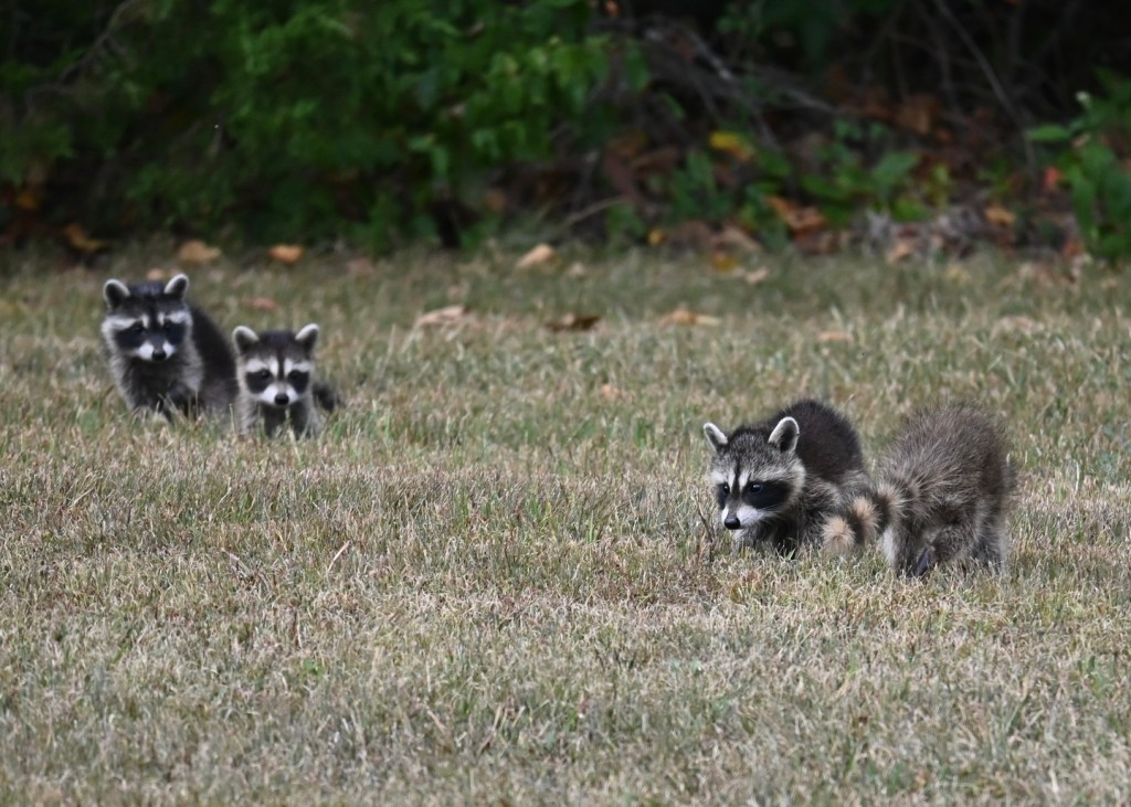 Eddy and Bart and I set off on time, but our trip was stalled by the cutest little varmints I have ever seen, just around the corner from our place. Quadruplet raccoons! I did have the camera with me, but I missed the best shot, when all four were staring at the truck and trailer.
