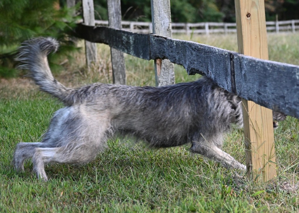 Just after turning the horses out, Eddy saw a deer in the pasture. Off he went, not at all tired after a day at the horse show. Even stinky, he is always happy and full of energy. Eddy is surrounded by a cloud of joy stronger than skunk stink!