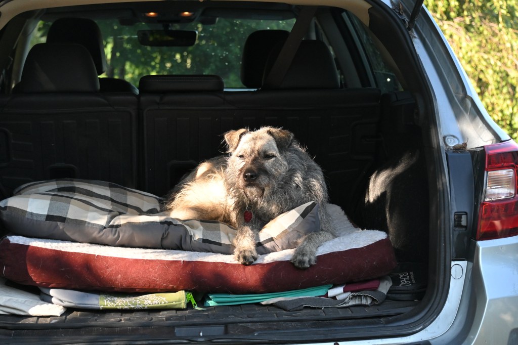 Where next, wonder the dogs? Harry knows we are stopping at the horse show.