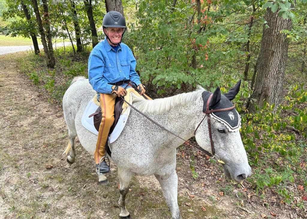 Ear plugs to dull distractionsReviewing the courseKris keeps me from getting too seriousBart gallops Bart jumpsSmall jumps, and an old rider, but Bart is impeccableSomewhere ahead of us is a jump – Bart engages his scope to get the seven!Kris is relieved we survived and got the numbers!It was fun!