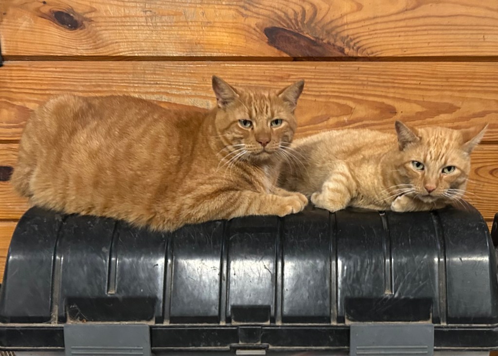 A Monarch on the zinniasOrange boys – Tom Morris and MarmaladeA crepe myrtle at the edge of the woods dressed for autumnEvening barnHoping for rain tonight