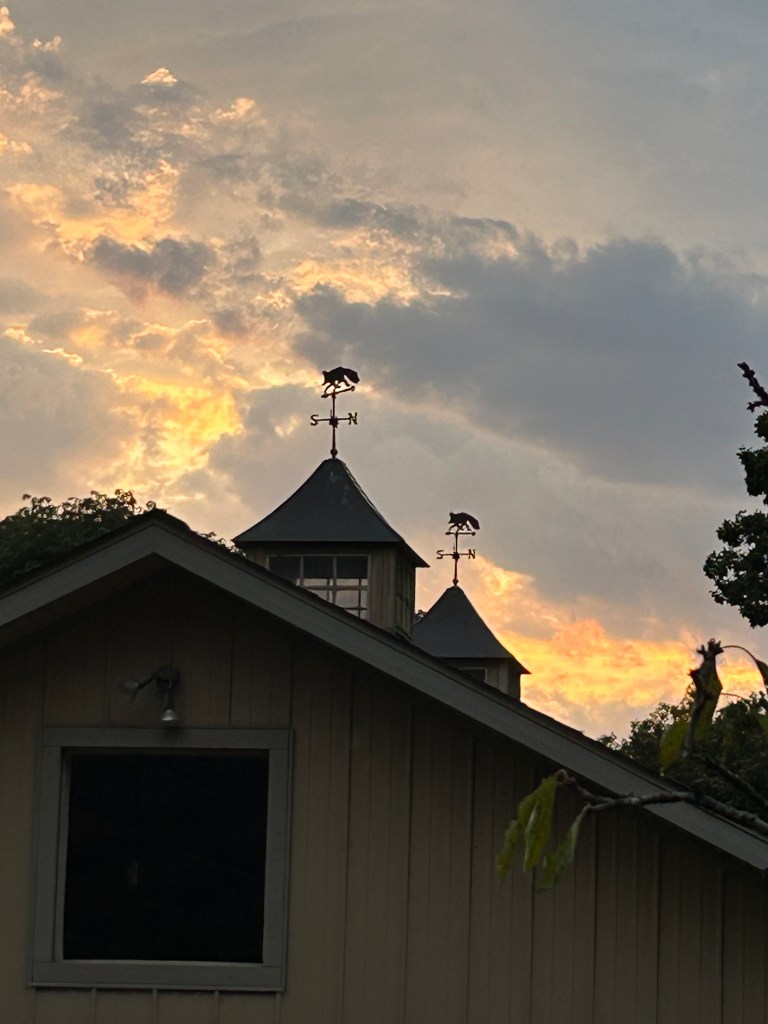 A lovely, overcast day for Bart’s final ride before the first week of showing commences tomorrow with schooling day. Jane and Derry rode earlier, but we both encountered dreadful skunk smells along the north perimeter fence more than a hundred yards up from the culvert. Sorry to report that Eddy and the house still smell pretty awful. This too shall pass, I hope soon!