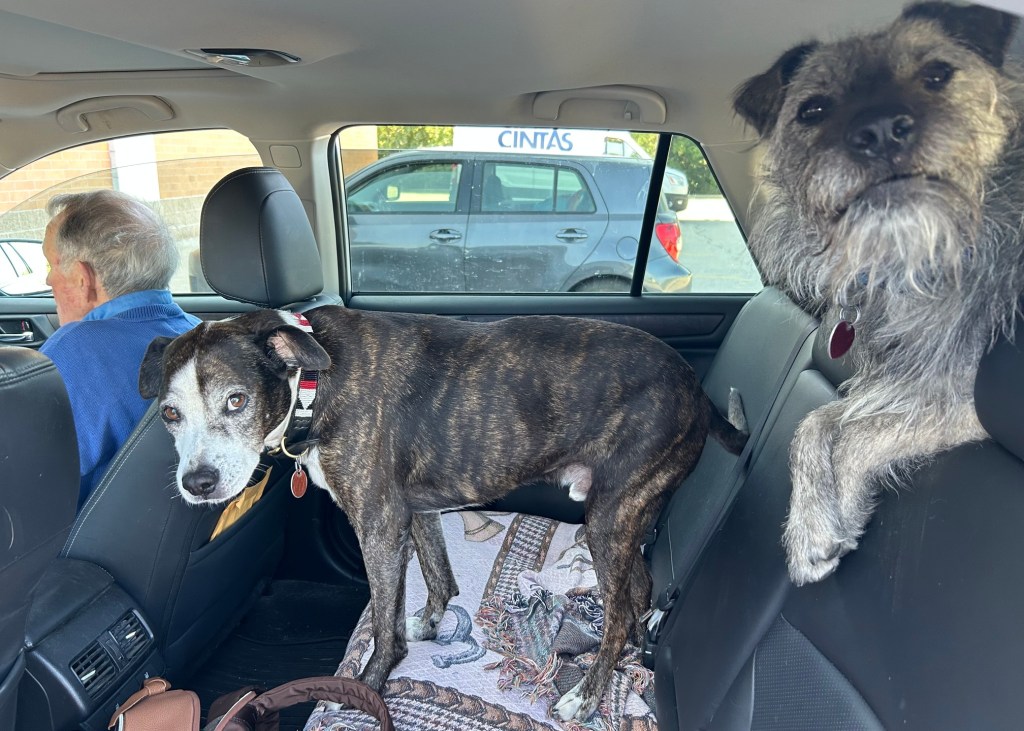 First stop was for my Covid booster, then on to a routine visit to Harry’s cardiologist. The news there was good, as were the two jokes that cannot be repeated on the blog. Dr. Davison is a connoisseur of jokes, and a scrupulous cardiologist. From there, we went to lunch with the dogs.