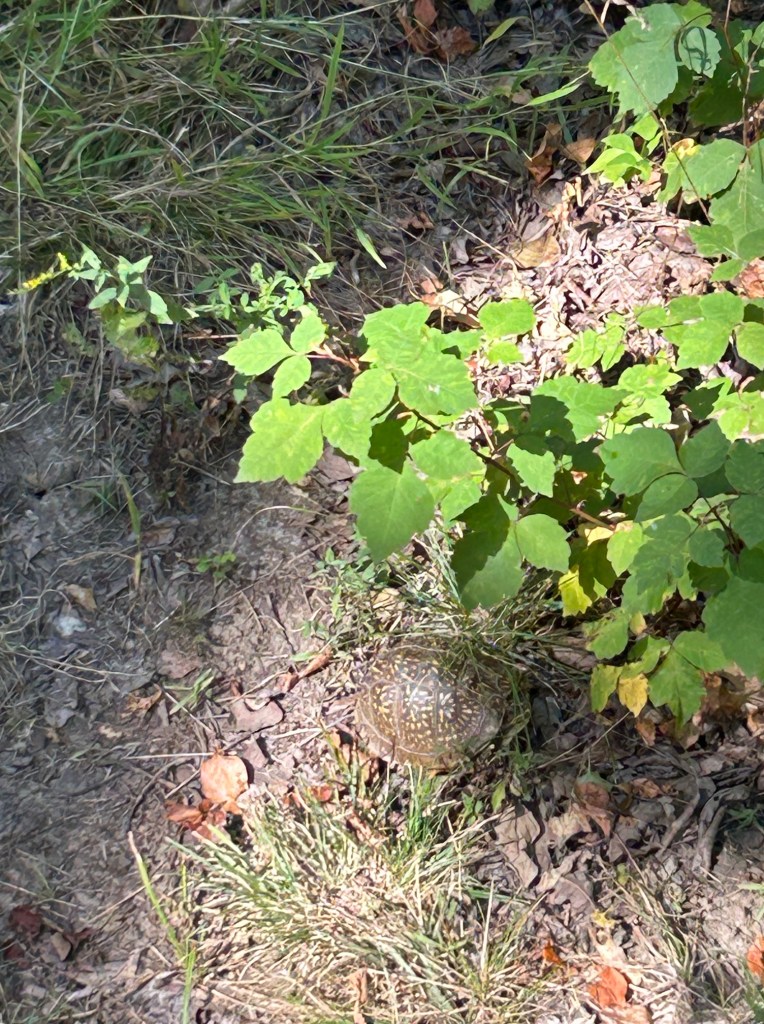 Always a good day when we see a perfect box turtle under a fragrant sumacAcres of yellow flowersHill work for fitnessJane and DerryBart leads the way westward