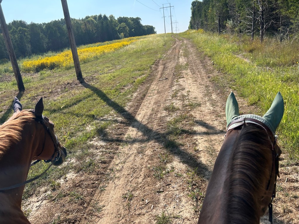 When I returned, Harry and I tacked up Oisin and Stone to take advantage of a nice afternoon, with few horseflies .