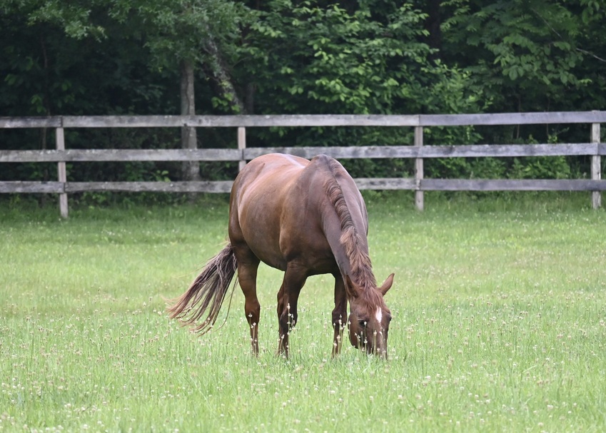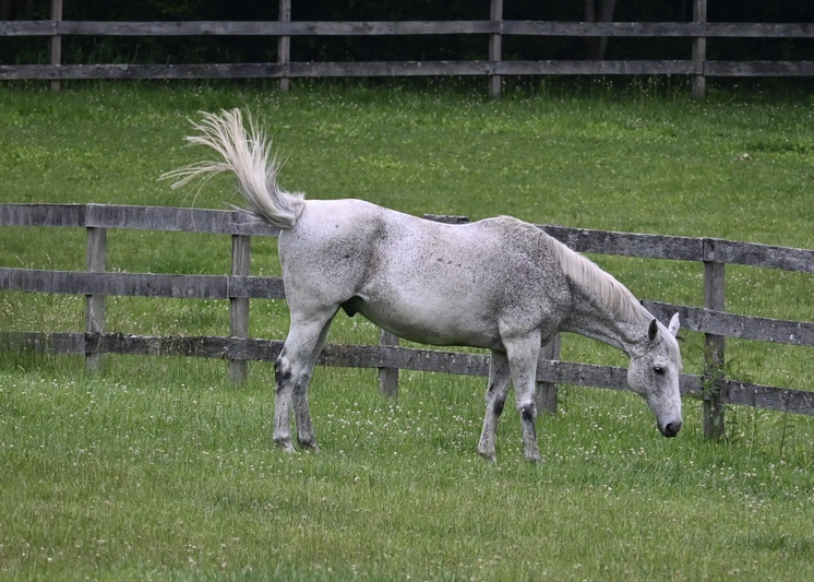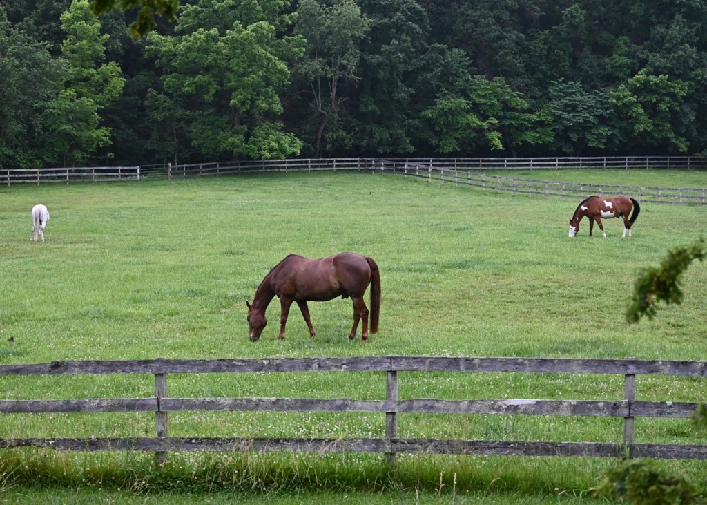 Hot, buggy weather is normal for Missouri in July. The horses are out at night, getting plenty of exercise with their tails.