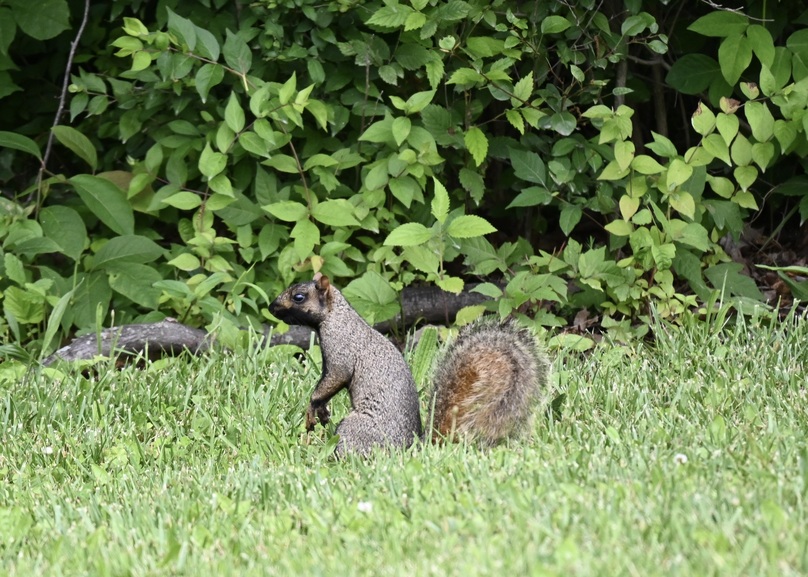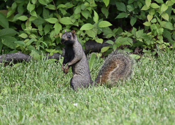 There was great excitement as we headed out to the No Kings march on Saturday, when we saw a strangely colored squirrel. It had a black front. The pictures could look like shadow, but this squirrel actually had a black face and chest. I stopped and took its picture near the neighbors’ property, and have watched for it ever since, but no further sightings…