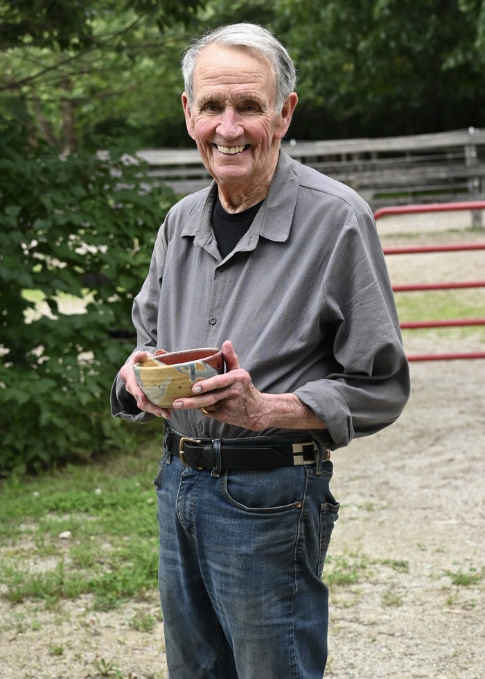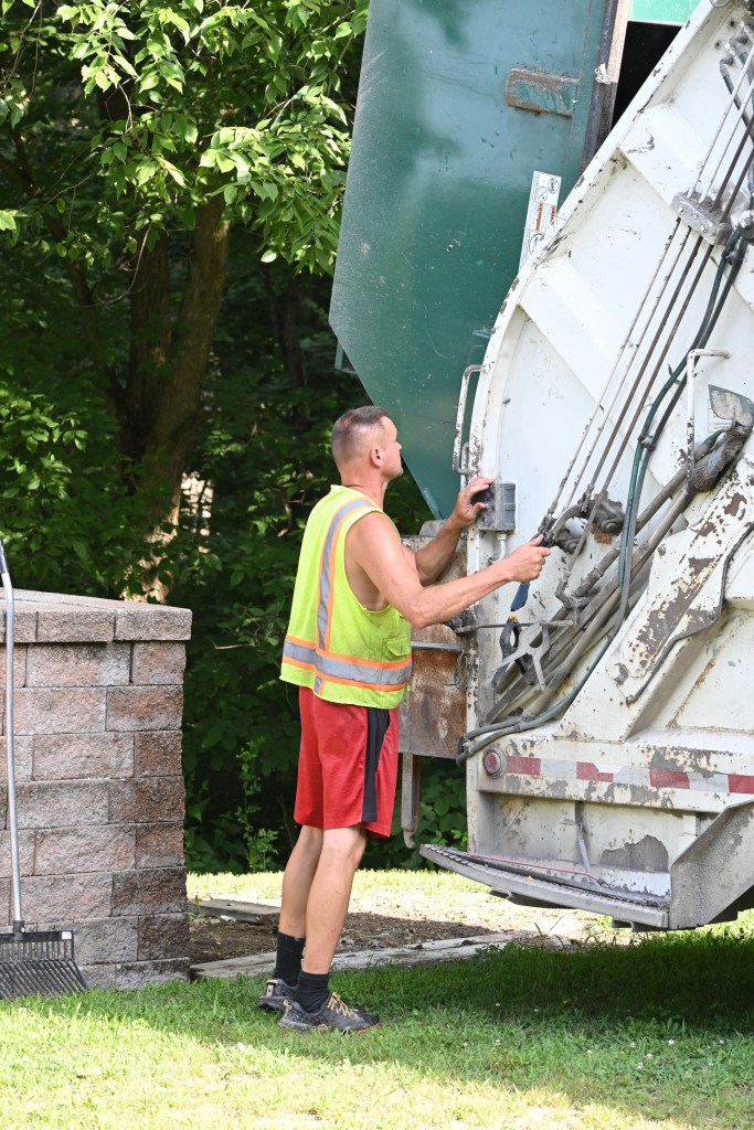 Harlan empties the dumpsterHaraln in the shade of the barn