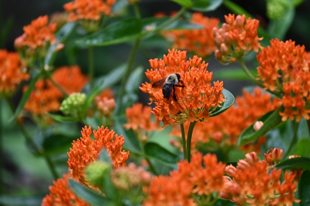 A bumblebee at workBumblebee on butterfly weedFritillary butterfly on butterfly weedOak leaf hydrangeasAstilbeFritillary on echinaceaA daylily that has evaded the deer (the deer are getting more brazen, alas)