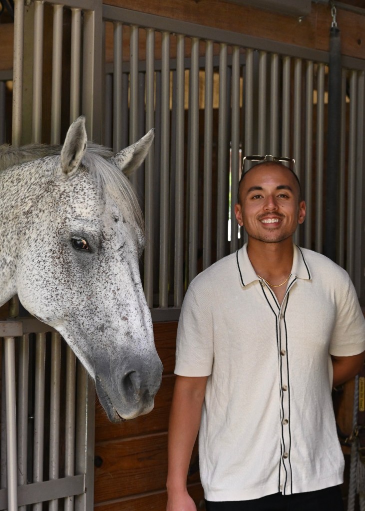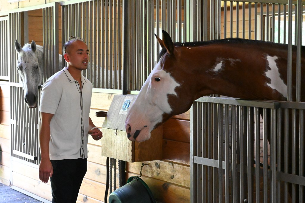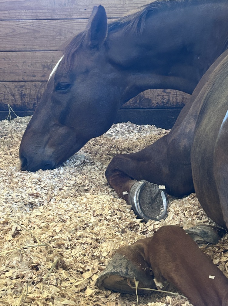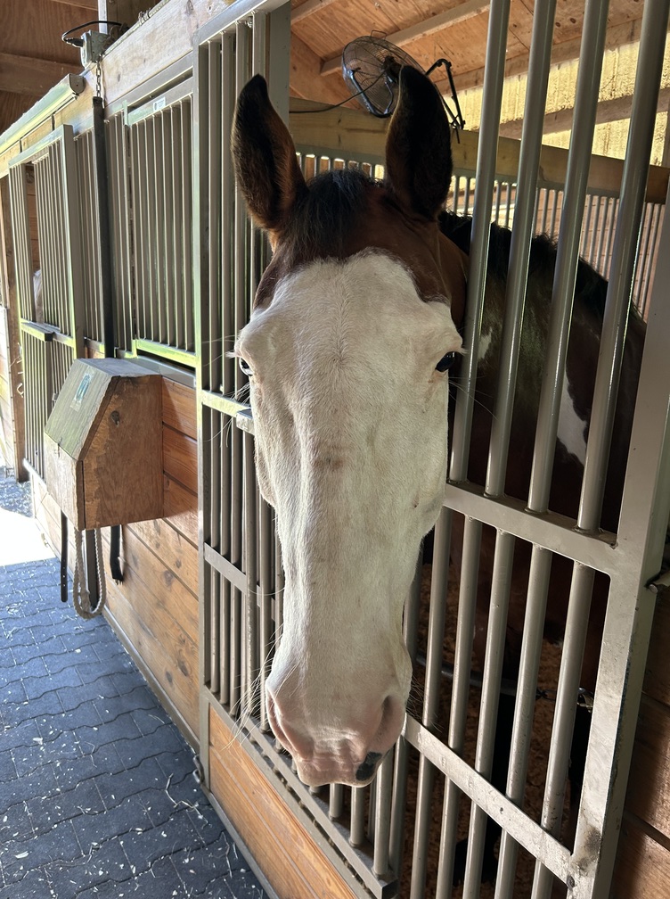 FredStone sings Fred’s praises!Oops! I forgot to close Stone’s stall, but he had no interest in leavingStone and Harry on an early morning rideOisin appreciating the flowersBart rests Oisin in full protective gearAnother fly mask lost during the nightStone and BartBart and OisinOisin staying hydratedStoneEarly morning herd