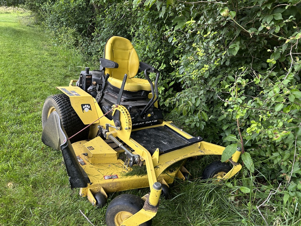 I did some mowing last week, and managed to break the mower, leaving it stuck on the other side of the creek. Nathan came to the rescue on Friday in pouring rain, and managed to get the drive belt back on (I had run over a stick that popped the belt off). Luckily, the belt was not broken. Unluckily, Nathan got soaking wet and had to work all day next door, while I was able to go to the house and change into dry clothes. He was incredibly nice about it. Also, luckily, the creek did not rise, despite rain, and we were able to get the mower back to the shed.
