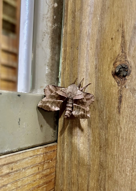 There was a fascinating moth in the barn. I think it is a Big Poplar Sphinx moth (Pachysphinx occidentalis), but I am no expert. Whatever it is, it’s gorgeous. Life forms on this planet are astonishing. We have been very fortunate to see so many creatures here.