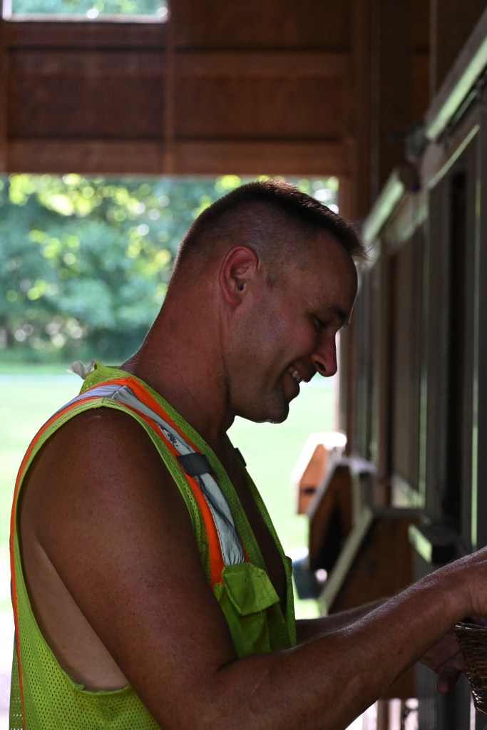 July 31st brought a much anticipated break in the heat and humidity, along with Fred, who worked his usual magic on the horses’ feet. He also always provides laughter and news of the wider horse world, which is fun.
