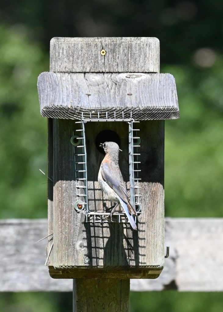 You know who is working harder than I am this week? Mr. and Mrs. Bluebird. They have brought 4 more bluebirds of happiness into the world and are feeding them plenty of bugs. It is hard work. Just look at poor, bedraggled Mrs. Bluebird!