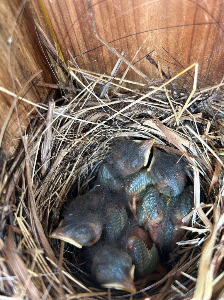 The second clutch of bluebirds successfully fledged! The world now has four more bluebirds of happiness, which we certainly need these days.