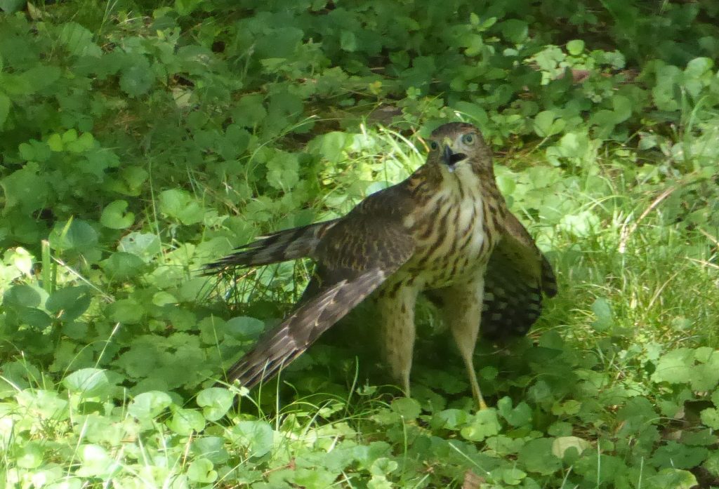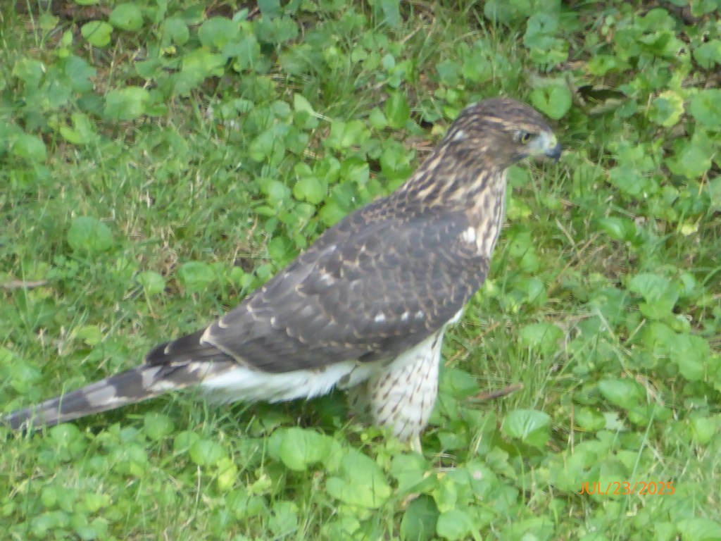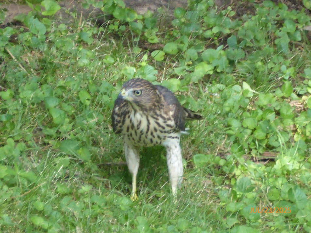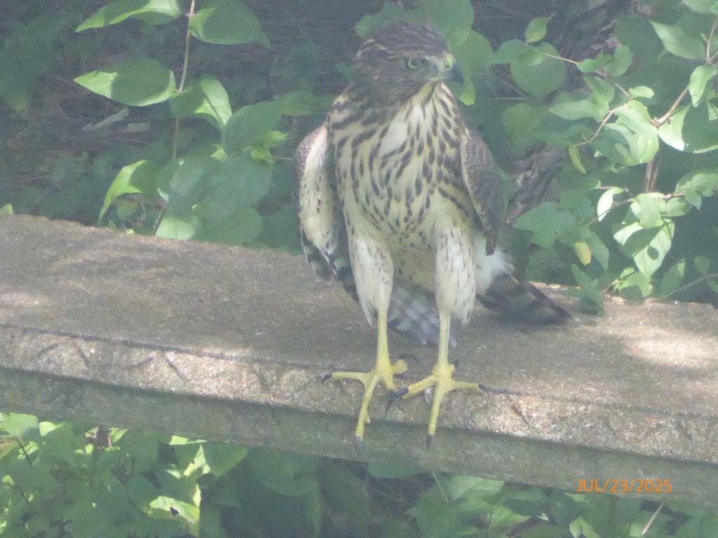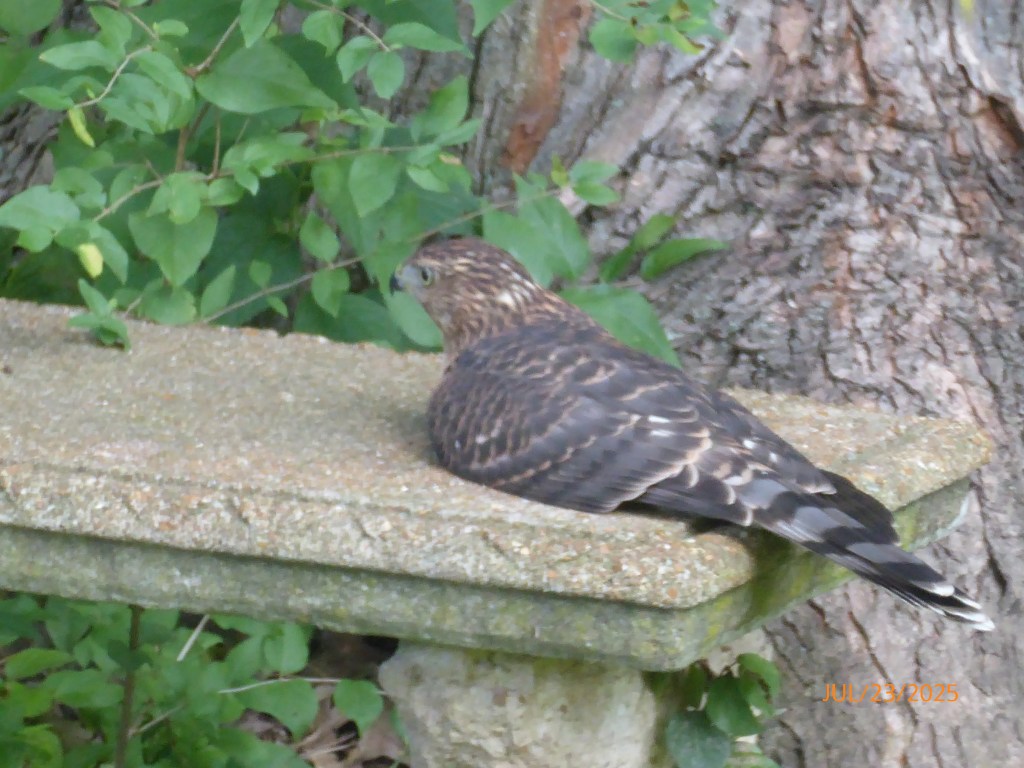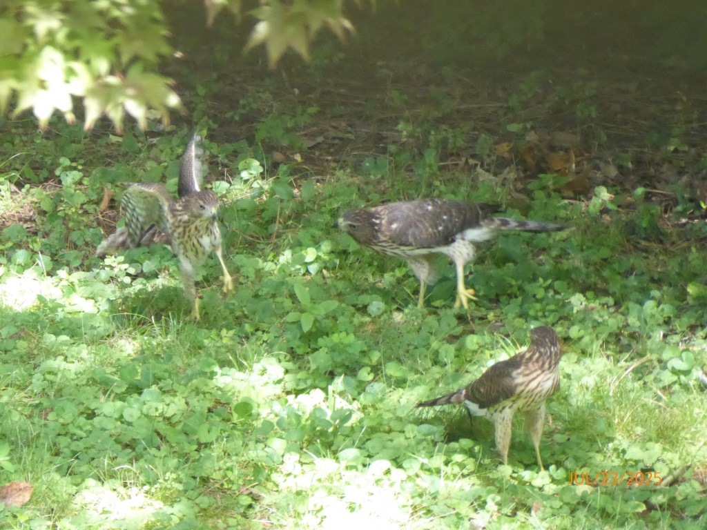 I had lunch this week with our friend Jane McClaren, who lives in St. Louis. Her partner, Barry, took some incredible pictures of hawks in their back yard. I think they are broad winged hawks. Jane was concerned for them in the heat, but when she took water out, they flew away. They appear to be a pair with a juvenile.